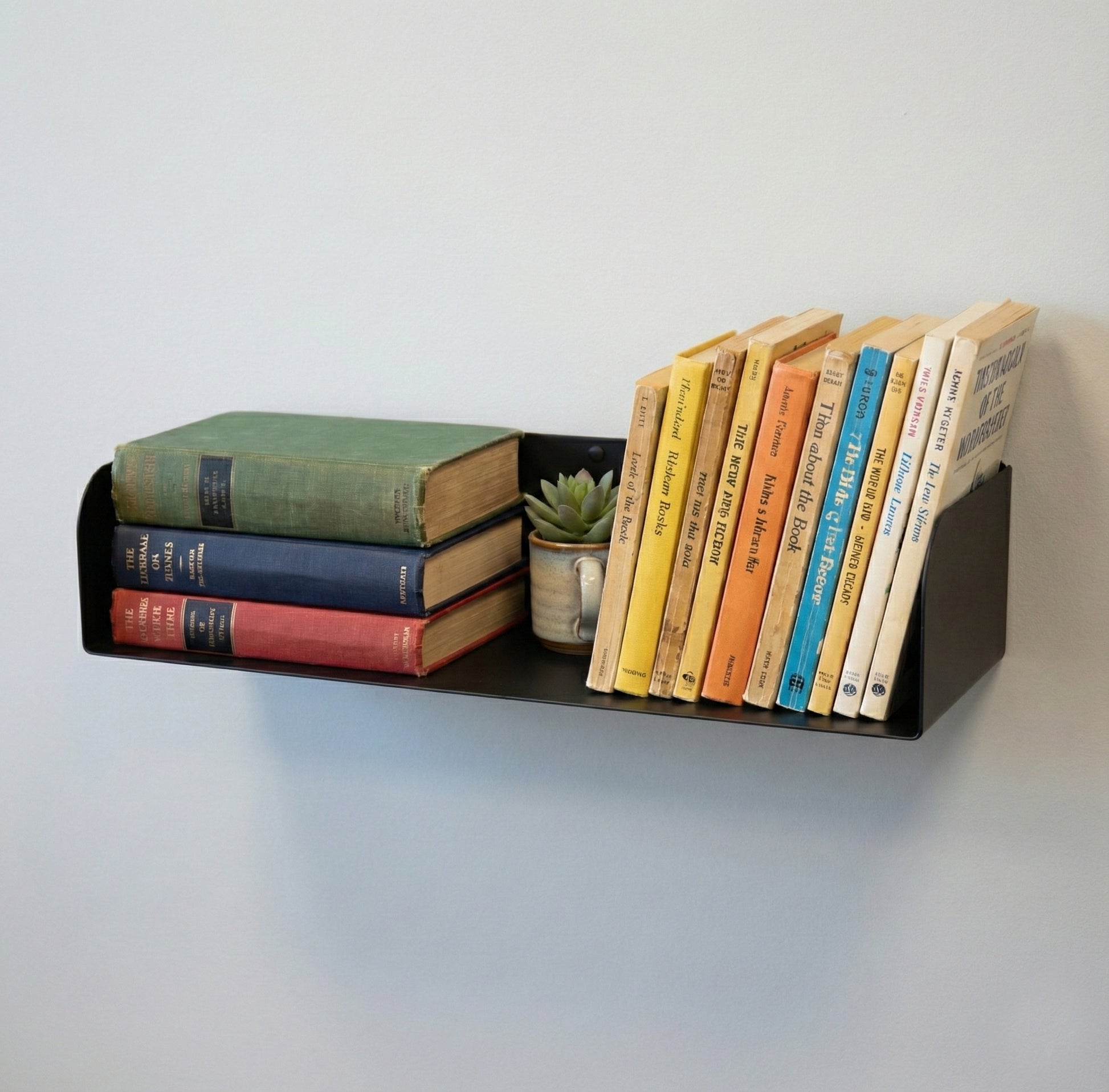 Simple yet solidly built, our Metal Floating Book Shelf is designed to hold what matters most. Display your books, plants, and decor securely (no tipping or sliding) with the raised front edge. This minimalist design is made to match any modern home without overwhelming the space. Each ledge is handcrafted with 100% steel in Cincinnati, Ohio.